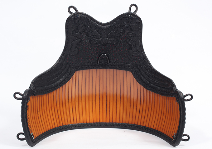 手揉クロザン革を使用した胴胸の光沢は見る人をひきつけ、まるで鏡のような美しさをもつ極上黒呂胴台と組み合わさることで圧倒的な存在感を示します。
