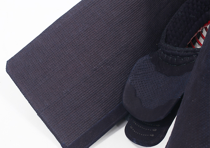 • 点刺の面布団は剣道着と擦れる裏側の糸の露出が少なく、耐久性が高くなります。