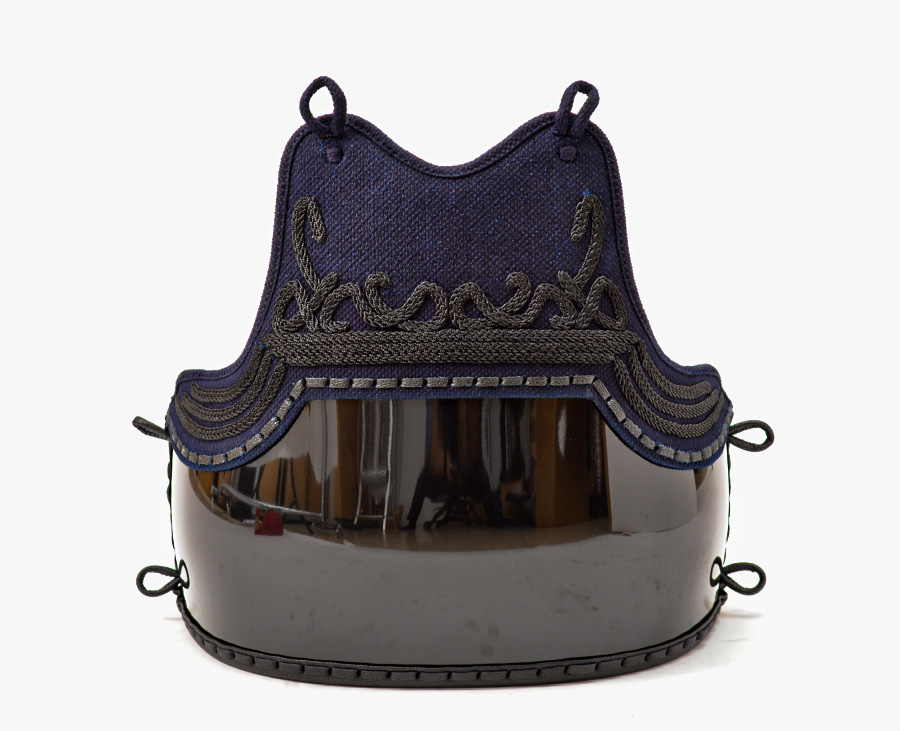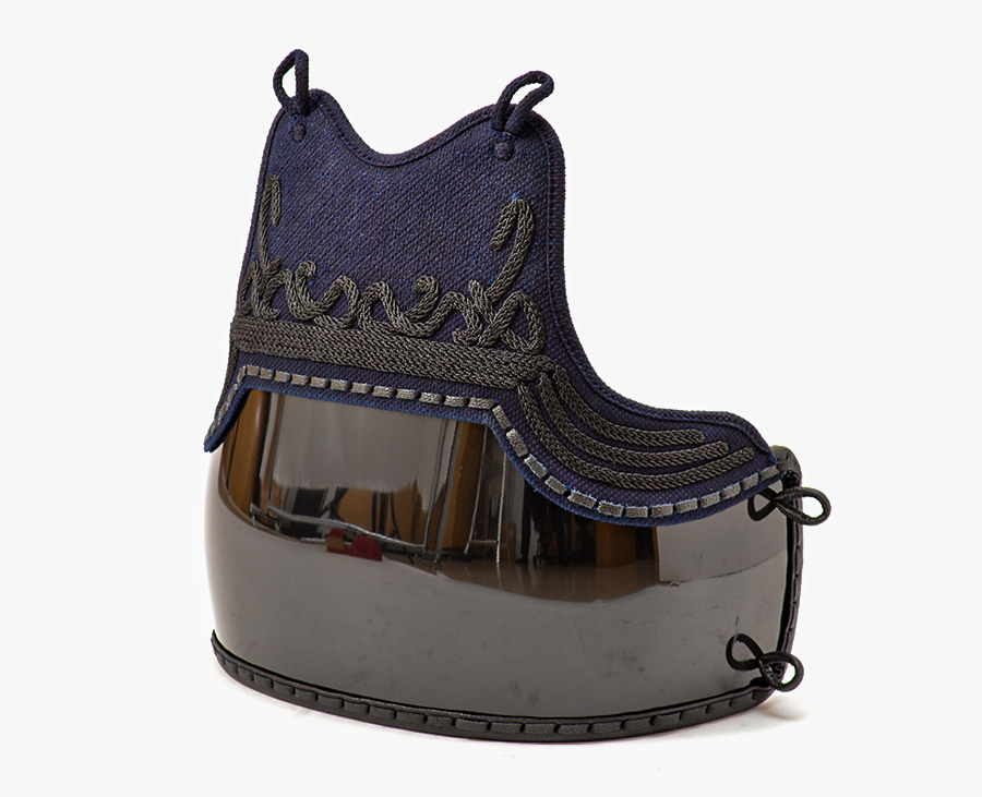 縫い付け刺繍・・・紺反生地に刺繍を入れ、防具に縫い付けて発送します。(※返品交換不可)