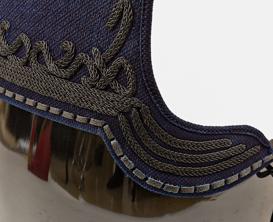 MARK-Xモデルから採用された古代紫の刺し糸は、手刺防具の線引きを思わせる高級感あふれる見た目に仕上がりました。
