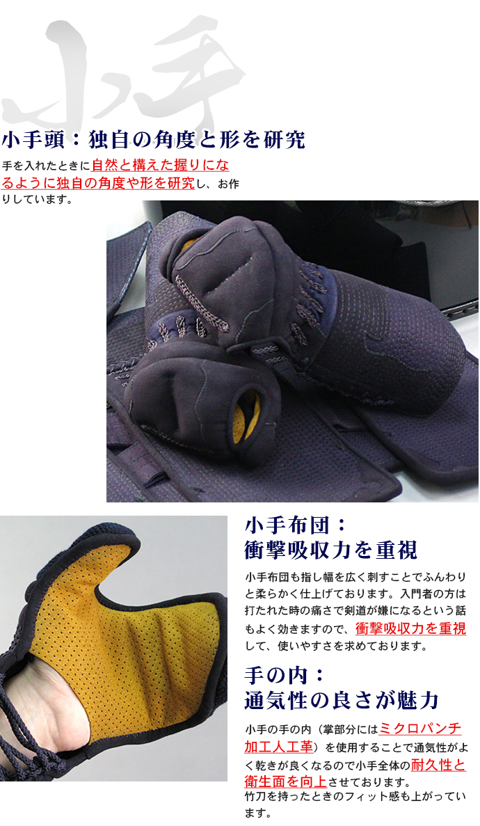 手首部分は構え・打突・回す際に手首へと負担が掛らないよう