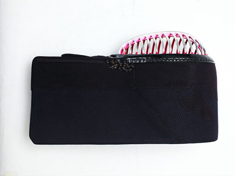 一針の間隔を広く持つことでミシン刺でも適度な厚みを残すことが出来、柔らかさと衝撃吸収性に長けた刺し方になります。