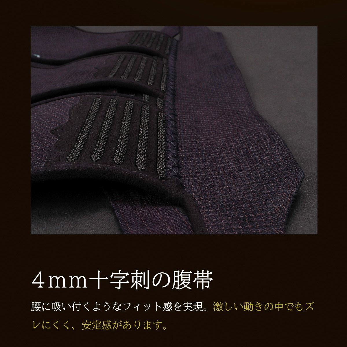 MARK-Xモデルから採用された古代紫の刺し糸は、手刺防具の線引きを思わせる高級感あふれる見た目に仕上がりました。