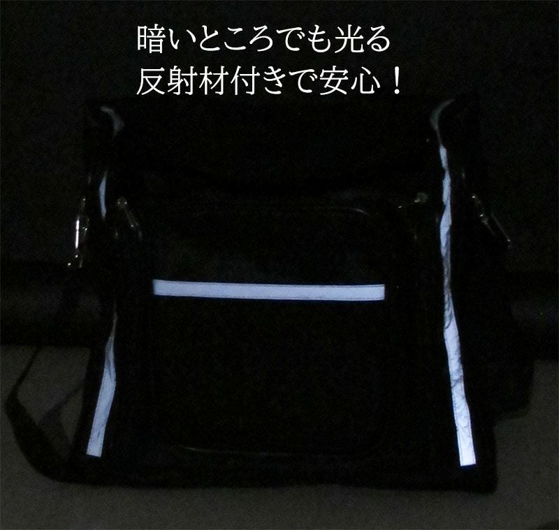暗い夜道でも安心してお使いいただける反射材付きの防具袋です。
