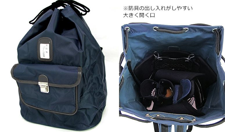 移動にとても便利なリュック型防具袋です。丈夫なナイロン製リュックには紺、茶、黒、赤の四色をご用意いたしました。子供から大人まで幅広い層から支持を得ている確かな商品です。