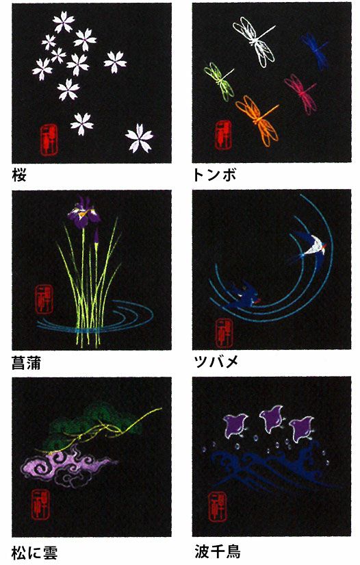 桜・トンボ・金魚・蝶などの刺繍を入れて製作する巾着袋です。