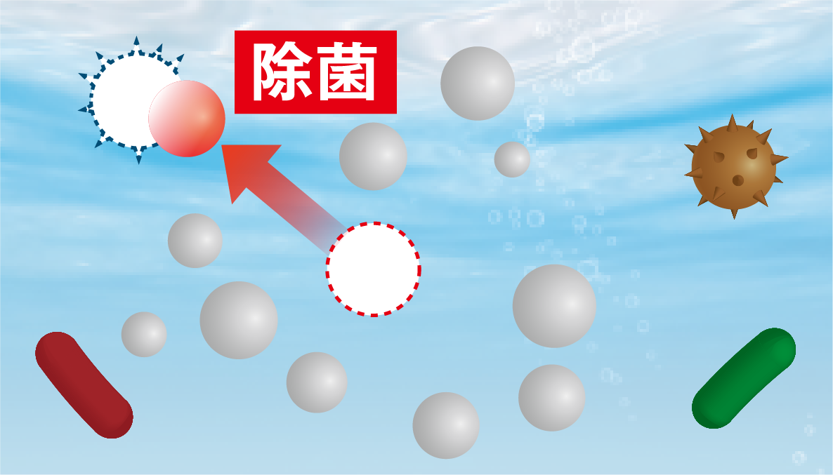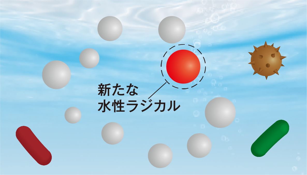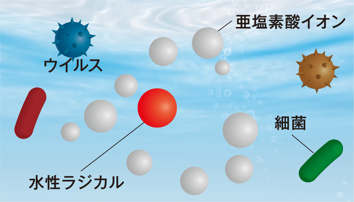 水性ラジカルが菌やウイルスにぶつかることで除菌します
