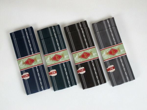 居合道用の正絹製の帯です。 京都の伝統的な製法により1つ1つ手作業にて製作した伝統の正絹帯です。 色は紺、グレー、茶、深緑の4色よりお選び頂けます。 サイズ:長さ 約390cm x 幅 約9.5cm 正絹100% 【武道具・居合道・居合刀・帯】