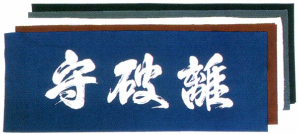 『守破離』の文字を一面に描いた剣道用面手拭いの販売です。 サイズ:(白地)約33cm×約100cm (色地)約36cm×約96cm カラー:白・紺・青・グレー・エンジ