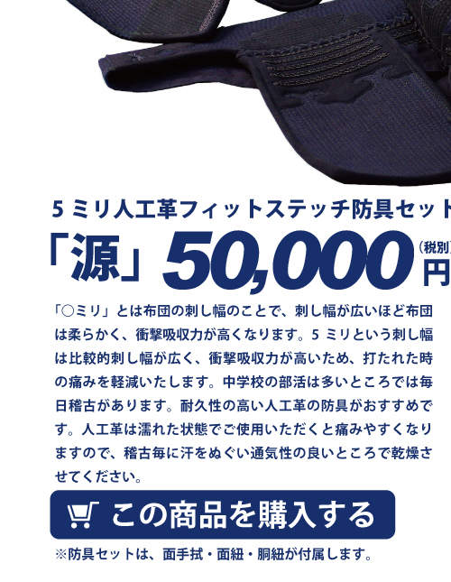 他の画像を見る 【リニューアル 2025モデル】 「源武」6mm織刺フィットステッチ 剣道防具セット【ミシン刺・機械刺】 定価 ¥ 121,000 のところ 当店特別価格 ¥ 53,900 税込 詳細を見る お気に入りに登録する 5.00 (5)