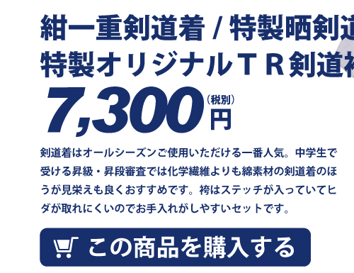 他の画像を見る 新紺一重剣道着/特製晒剣道着+新特製オリジナルTR剣道袴(剣道カット&内ヒダ縫製付)【剣道着・剣道衣・剣道袴セット】 定価 ¥ 16,500 のところ 当店特別価格 ¥ 9,443 税込 詳細を見る お気に入りに登録する 4.85 (39)