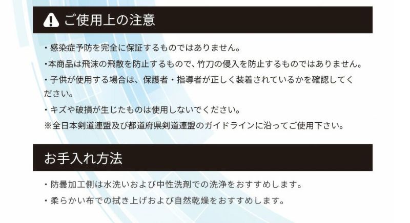 ・※全日本剣道連盟および都道府県剣道連盟のガイドラインに沿ってご使用ください。