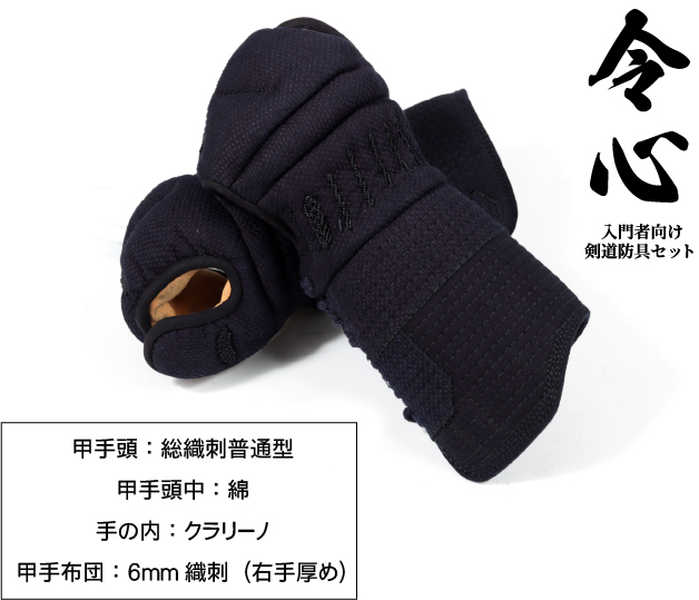 「令心」は綿素材の織刺生地を使用することで、皮革を使用した防具よりも通気性がよく、乾きやすくなっております。さらに竹刀との摩擦で最も傷みやすい手の内には、耐久性が高く汗にも強いクラリーノ革を使用しております。