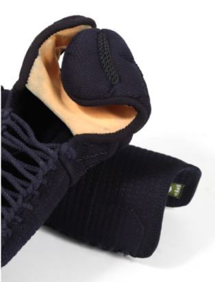竹刀を握る甲手頭内のクッション材に「カシミアコットン」という衝撃吸収性と柔らかさをバランスよく兼ね備えた素材を使用し、安全かつ機能性の高い甲手となっております。