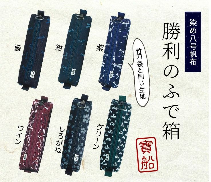 ------------------ 寶船ほうせん 勝利のふで箱 (染め8号帆布製) 全て箱付 ご利益お札付 ------------------ 竹刀袋と同じ柄、生地の「ふで箱」。 全て箱付ですので、卒業シーズンなど贈り物にも人気の商品です。 竹刀袋生地をカットして製作しますので、 お友達同士で注文しても、1個1個柄が違ってくる楽しみがあります。 10種類から選べる、「ご利益のお札」も付いていますので、 自分の目標や、 贈る相手の方にも、メッセージとして使えます。 ※ご注文時の選択項目で、お札の選択がなかった場合は当店お任せとなります。 注意点 ・ネーム刺繍以外は、お受けできません。 ・竹刀袋生地をカットし製作しますので、柄位置の指定はお受けできません。 ・ネーム刺繍は、まとめて5個以上のご注文からお受けできます。(生地・柄がばらばらでもOK) ご希望の場合は、別途専用ページからご注文ください。 ・生地色は、ご覧になる環境で変わります。 勝利のふで箱サイズ 縦約20cm x 横約6cm x 高さ約4cm 重さ約40g ご利益のお札サイズ 縦約7cm x 横約3.5cm 紙製 納期:約1週間(ご注文個数により変動)