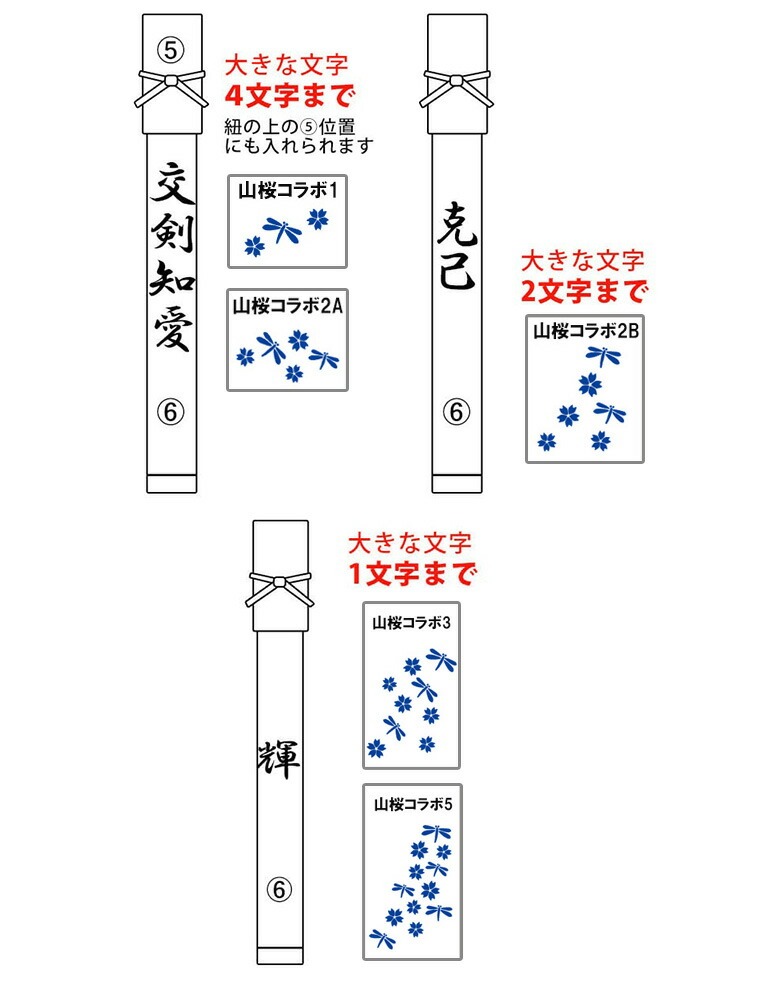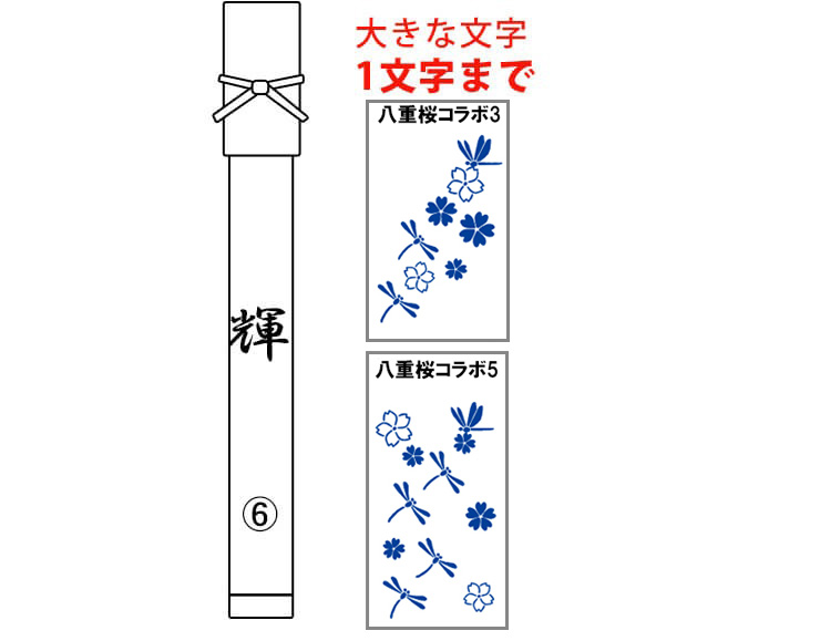 柄物(昇り柄など)の生地をお選びの場合 (6)番位置:竹刀袋下部に刺繍はお入れできません。