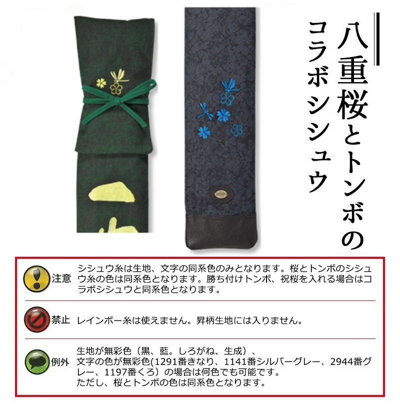 勝ち付けトンボ・祝桜を一緒にご注文の場合 無彩色(生成・くろ・グレー・シルバーグレー)か、同系色をお選びください。
