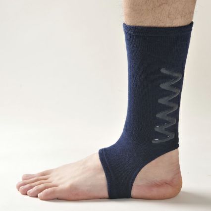 特殊素材でアキレス腱の断裂を防止する効果が 期待できます。色は紺色です。 サイズはMとL、LLをご用意しております。