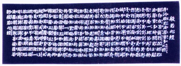 『般若心経』の文字を一面に描いた 剣道用面手拭いの販売です。 サイズ:約36cm×約96cm カラー:白地黒字・紺地白字