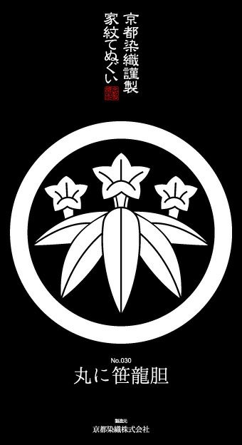 家紋てぬぐい 丸に笹龍胆(ゆうパケット可)