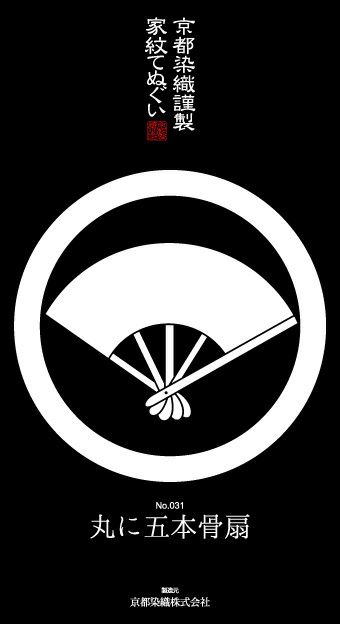 家紋てぬぐい 丸に五本骨扇(ゆうパケット可)【手ぬぐい てぬぐい 面タオル】