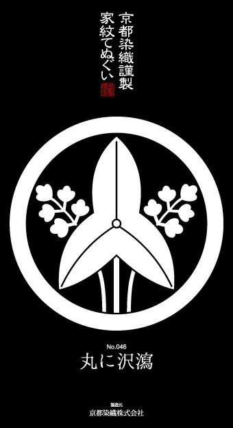 家紋てぬぐい 丸に立ち沢潟(ゆうパケット可)