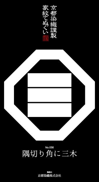 家紋てぬぐい 隅切り三本角(ゆうパケット可)【手ぬぐい 手拭 面タオル】