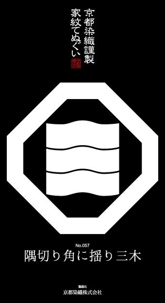 家紋手拭 隅切り揺り三本角